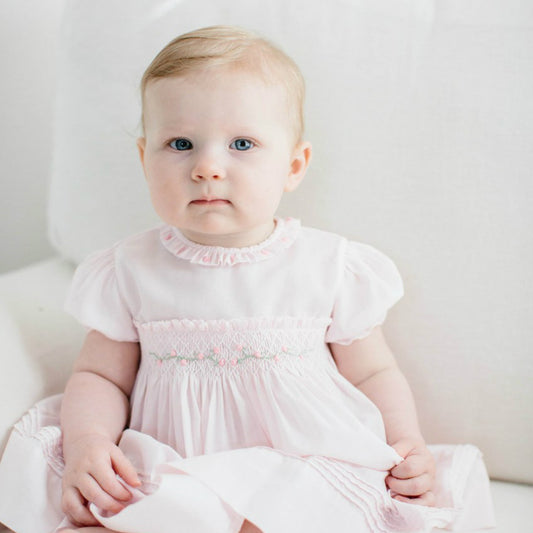 Vestido blanco con flores y punto smock