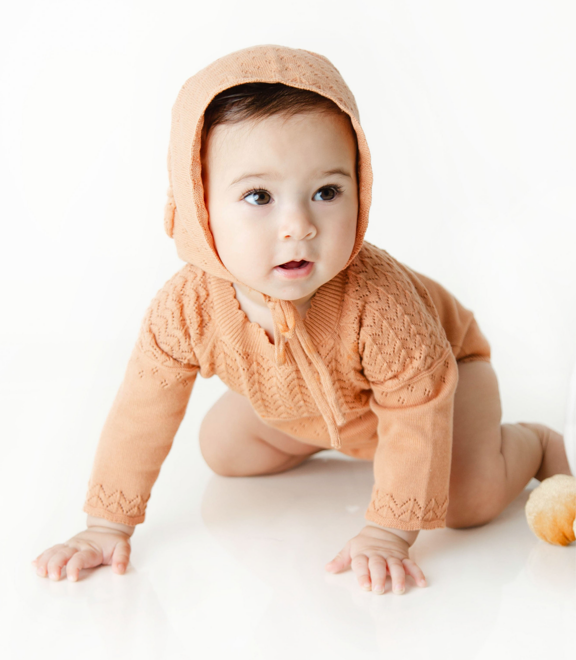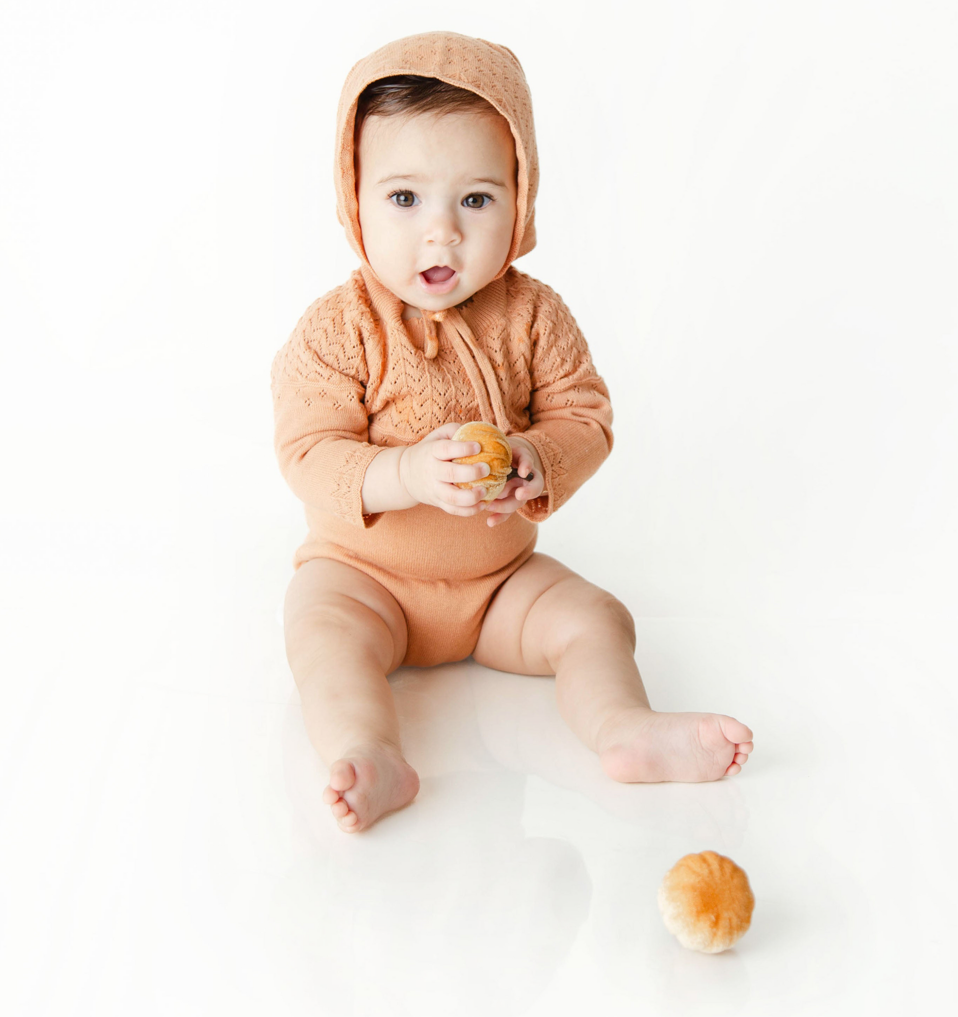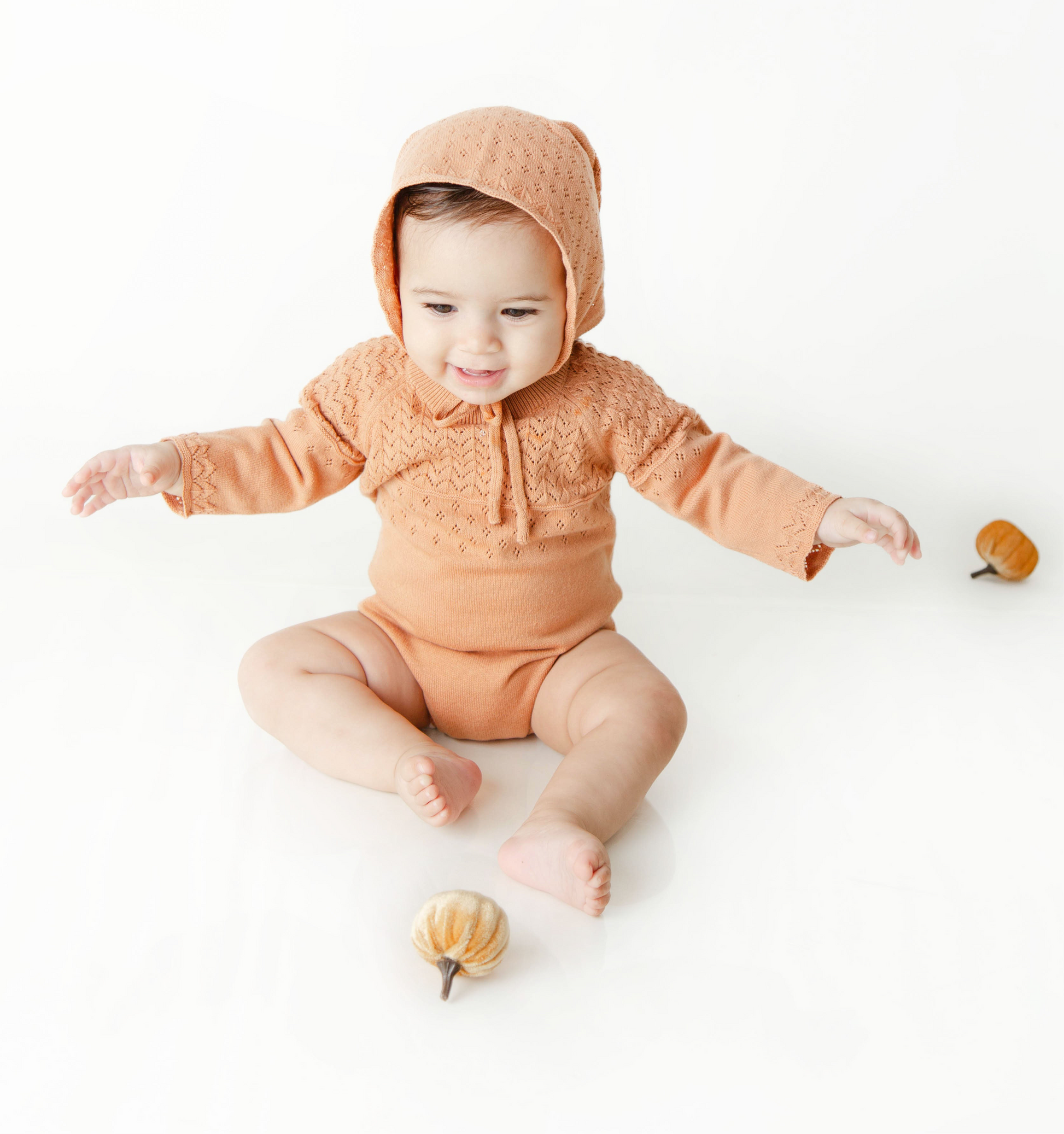 Color ámbar cálido, ideal para temporada otoñal. Perfecto para sesiones de fotos o para los primeros paseos del bebé.